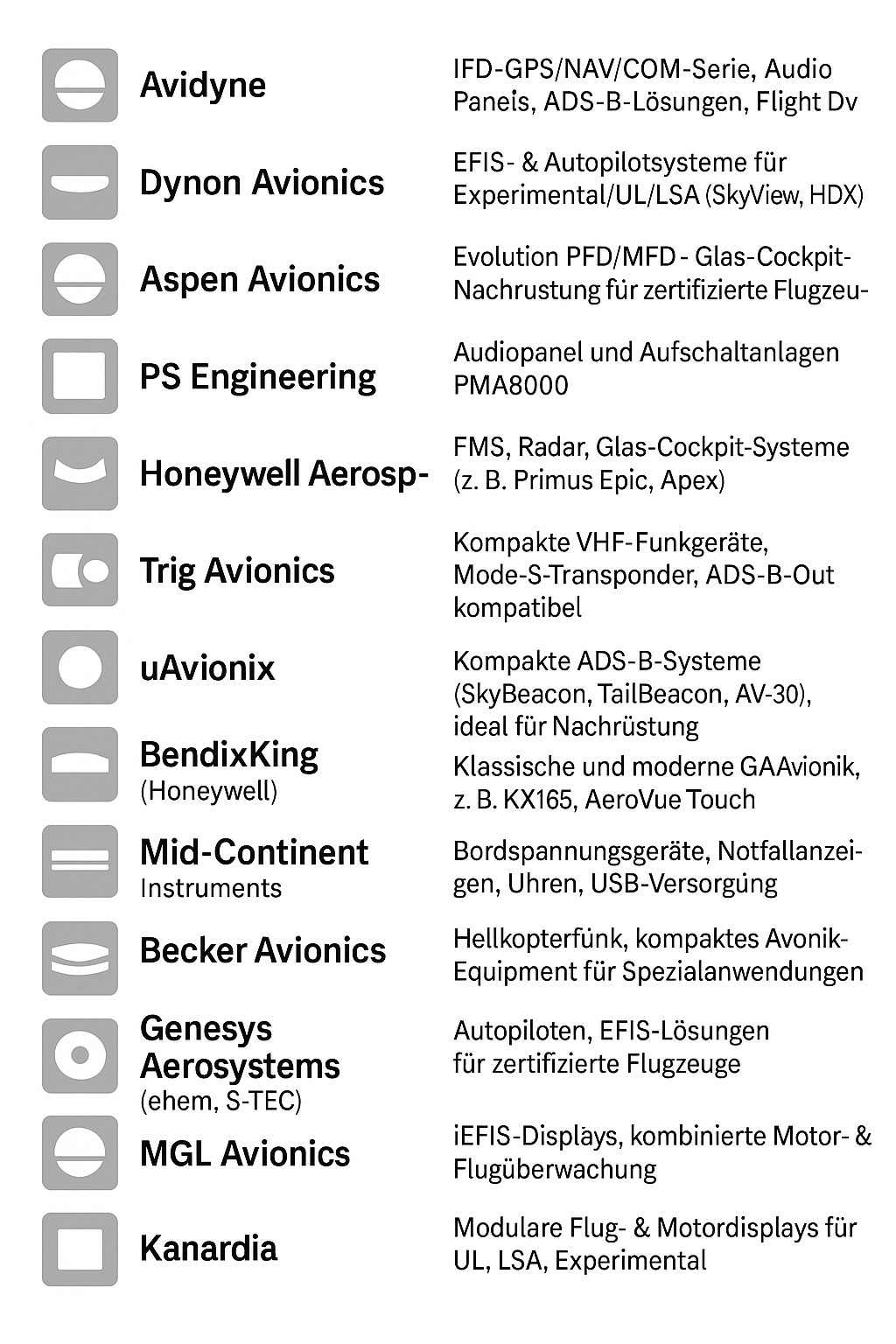 AAS-Avionik ist bei den wichtigsten Herstellern von Luftfahrt Systemen und Ersatzteilen als Händler gelistet, so können Sie aus einer breiten Produktpalette an Systemen und Geräten profitieren.
