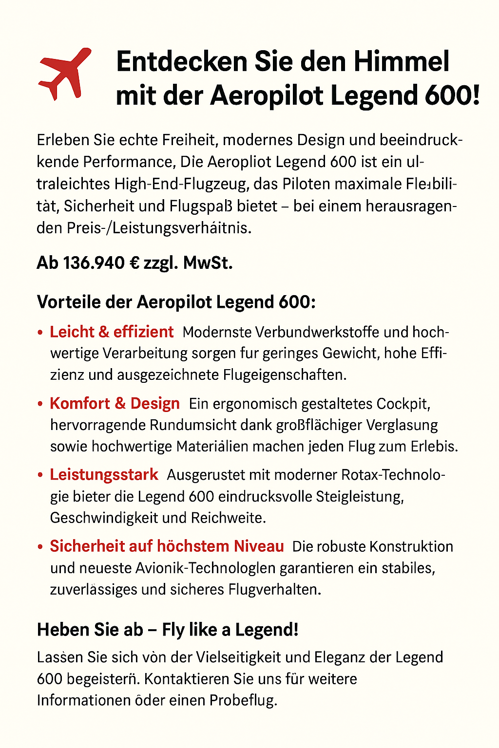 Entdecken Sie, warum so viele Piloten sagen: „Fly like a Legend.“